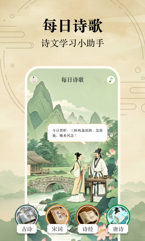 它不仅可以为你推送好诗,还能依照着节日、节气等陪你进行诗歌学习。支持用户写下自己的学习笔记,这样学起来才更深刻有意义哦。更有颇有雅趣的古诗词游戏可以休闲,让你充分沉浸于传统文化的魅力当中。