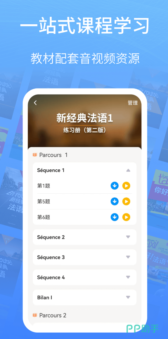 外研社出品,词典资源是它最硬的底气。六部权威词典收录在内,法汉和汉法词条加起来超过二十万条,释义准确,例句地道,查专业词汇也不会卡壳。和外研社教材深度绑定是它区别于其他软件的地方,"新经典法语""你好!法语""大家的法语"这几套教材的音频和互动资源都能在里面找到,课后练习直接在APP里完成,不用另找资料。
