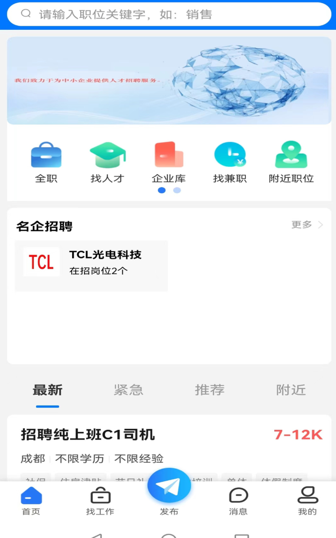 专注成都本地市场,近20万家企业入驻,有效招聘职位超过120万个。招聘企业资质100%人工审核,建立了完善的企业信用评价体系,问题企业进不来。简历中心支持刷新简历,让HR优先看到求职者。投递状态显示功能可以实时跟进求职进展,不用一直猜对方有没有看到。覆盖成都主城区以及周边多个核心区域,工厂招工、餐饮服务、物流配送、IT技术等15个以上行业实时更新。
