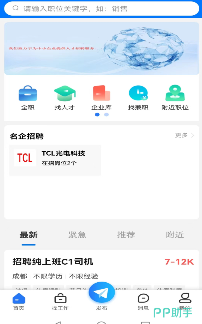 去中介化是它最核心的一点,岗位全部由企业HR或部门负责人直接发布,不经过任何中间层。沟通方式像发微信一样,和主管直接聊,谈妥了当天就能确认入职。附近工作的筛选功能做得顺手,按通勤距离、薪资区间都能快速过滤。企业直播招聘是个亮点,提前看到工作现场和福利情况,心里有底再去面试。