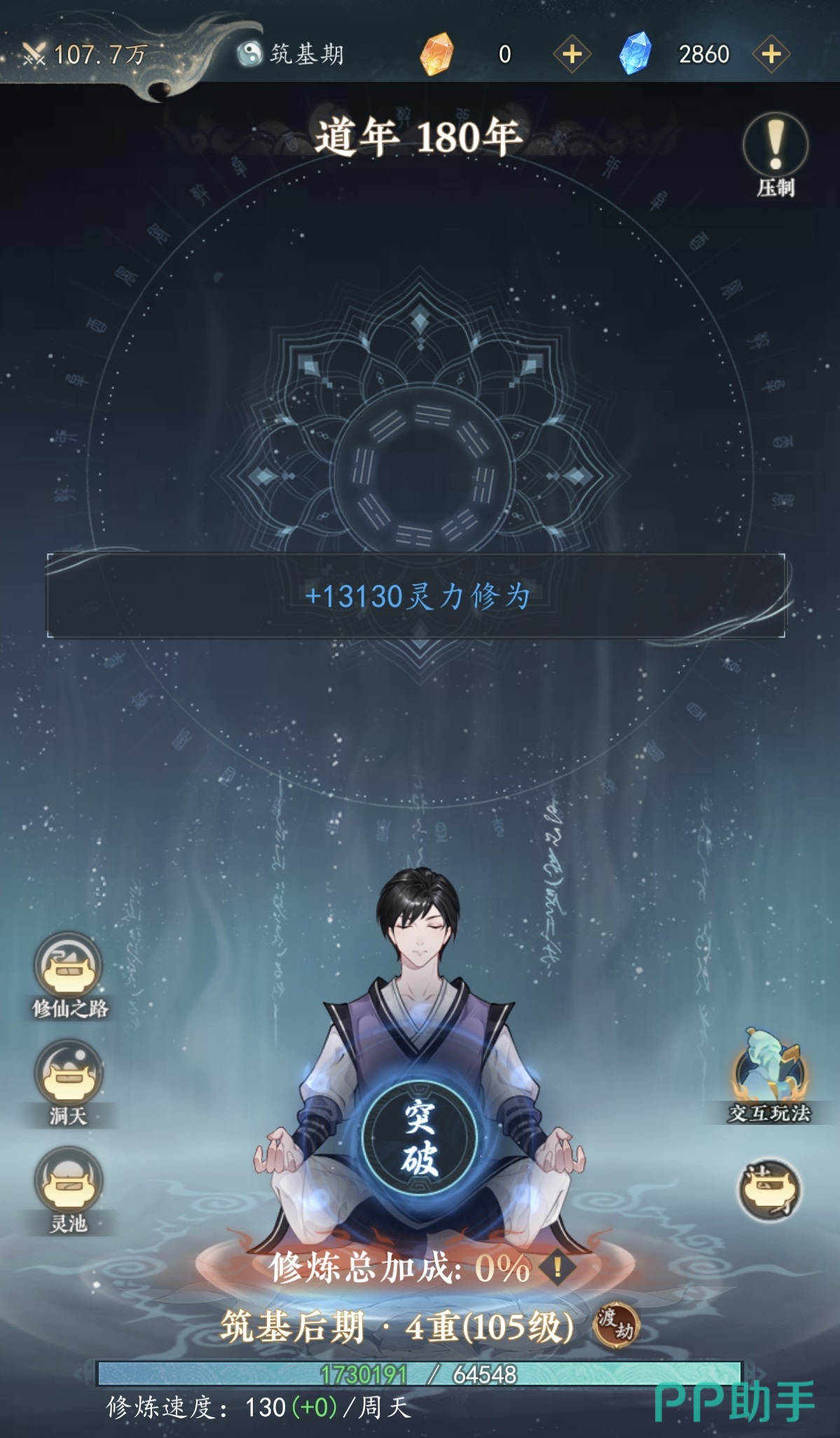 游戏前期以手动点击获取修为为主,节奏紧凑;当角色晋升至炼气初期后,自动修炼功能正式解锁,支持全天候离线挂机。值得注意的是,境界本身具备可观的战力加成,且随养成进度同步强化。要实现境界加速突破,关键在于提升单位时间内的灵力转化效率。核心加成来源包括:洞天系统中的灵枢神树、兰花洞天提供的固定增益;以及体质系统内先天道胎、混沌圣体等稀有属性带来的长期收益。上述模块一旦激活,相同挂机时长下可获取更高量级修为,从而缩短突破间隔。