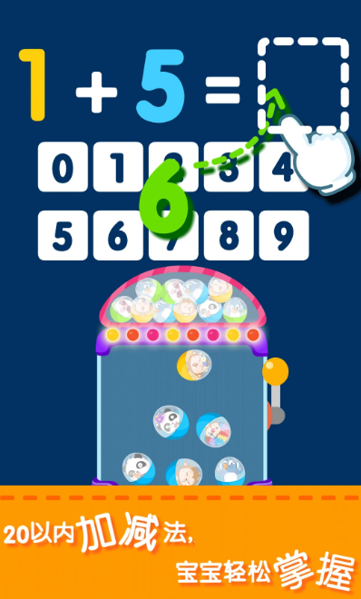 把20以内的数字计算和常见的消除玩法结合在了一起,玩家会在夜晚星空的画面里完成不同关卡的任务,每一个关卡都会自动生成不同的计算题目,游戏会给出限定的思考时间。小朋友们要在这段时间内算出答案,再找到和答案对应的内容进行配对,完成正确操作之后就会出现消除的画面。画面变化会给玩家带来直观的感受,关卡难度会一点点向上提升。