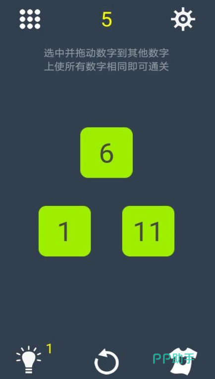 每一轮都会给出三个固定的数字,孩子可以用手在屏幕上拖动其中一个数字,把这个数字放到另外一个数字的位置上。拖动的数字是双数的时候,系统会自动分出一半的数值给到目标数字,孩子要通过多次这样的操作,让三个数字最终变成一个完全一样的大小。孩子在移动数字的时候,会不自觉的用到加减法的思路。