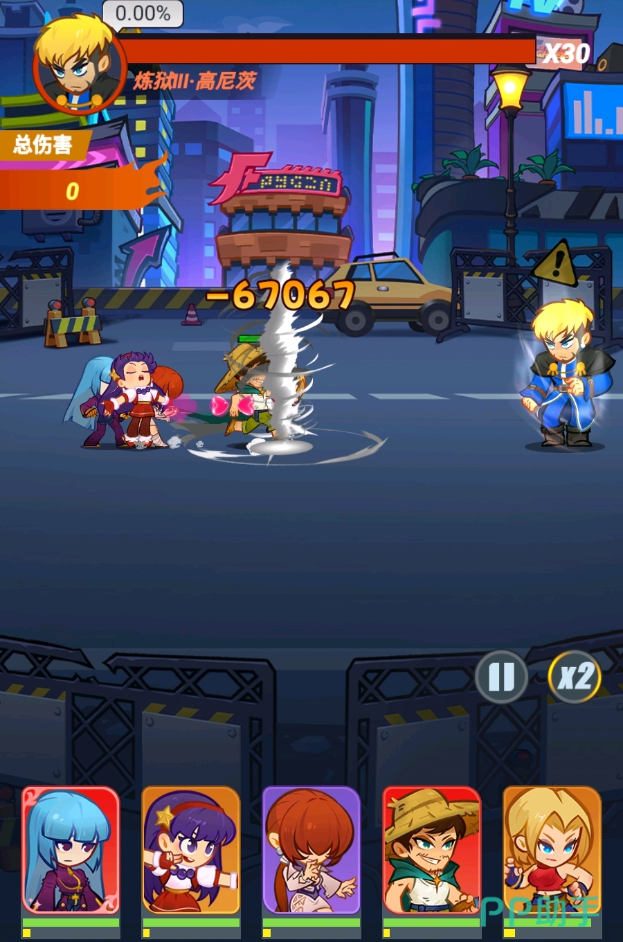 该阵容以高爆发+强生存为设计逻辑,成型周期短、资源投入产出比突出。核心输出为神乐千鹤与不知火舞,二者必杀技具备显著前排秒杀能力,能迅速瓦解敌方阵型结构,形成人数压制。二阶堂红丸担任副C兼功能位,既可补充持续伤害,又能为八神庵、陈国汉提供护盾,显著提升前排承伤阈值;而八神庵与陈国汉则凭借击退、眩晕等硬控技能,有效限制敌方关键单位行动节奏,为双C创造安全输出环境,实现“控—承—爆”三位一体协同。