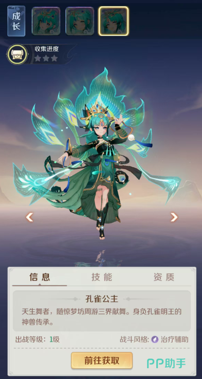 第三个大家可以玩儿的就是孔雀公主,孔雀公主当前自身能力当中可以带来的群体治疗恢复数值非常高,而且她一次性可以给3名队友带来最大气血的恢复,此时在强化了能力之后,她还可以去除我方身上的减益以及控制,那么这里她一次性就可以把所有减益都清除掉的时候,大家可以专门去攻打一些控制队,后期的群体治疗当中还可以拥有复活类型的效果,虽然在复活了之后治疗效果会减少一半,但是这里强化了以后,一次性可以复活两名队友,所以对于队伍来说,拥有的好处是最多的。