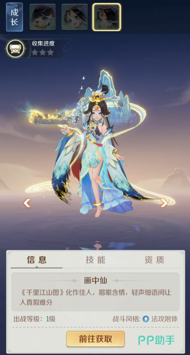 首先给大家推荐的第一个灵兽就是画中仙,画中仙在当前作为一个法术类型的灵兽,效果可以打出不一样的攻击,基础能力当中召唤出来的召唤物有3种效果,也就是水墨锦鲤、水墨灵鹤还有水墨灵狐,这3种召唤物为画中仙带来的基础伤害量是不太一样的,经常召唤出来的锦鲤是只有98%的伤害量,灵狐的话爆发力能力更强,所以这里有118%的伤害,而灵鹤的话伤害数值直接达到了138%,所以攻击能力会跟画中仙的召唤能力有关系。