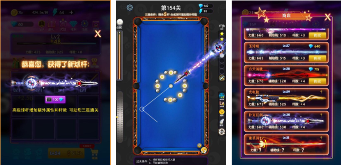 台球英豪是款可以竖屏操作的台球比赛主题手游,超级多的桌面设定和关卡加持增加了耐玩性,各种造型的酷炫球杆也可以随意解锁并触发特效,游戏动态效果拉满也有着环绕式的音效,更多好玩有趣的台球比赛任务期待着玩家参与,上手速度极快就算是小白玩家都可以轻松掌握打台球规则。