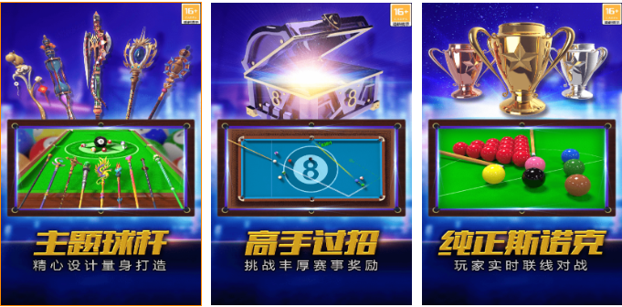 这是款支持多人联机的3D画面效果台球神作,拥有双人PK和斯诺克之类的好玩模式,各种各样的好玩联机比赛等待玩家参与,游戏画面写实3D加上扎实的手感都吸引了更多玩家,台球之间的碰撞音效也给人一种逼真环绕的音效,超级多的对战玩法和真实物理引擎也是很多玩家的最爱。