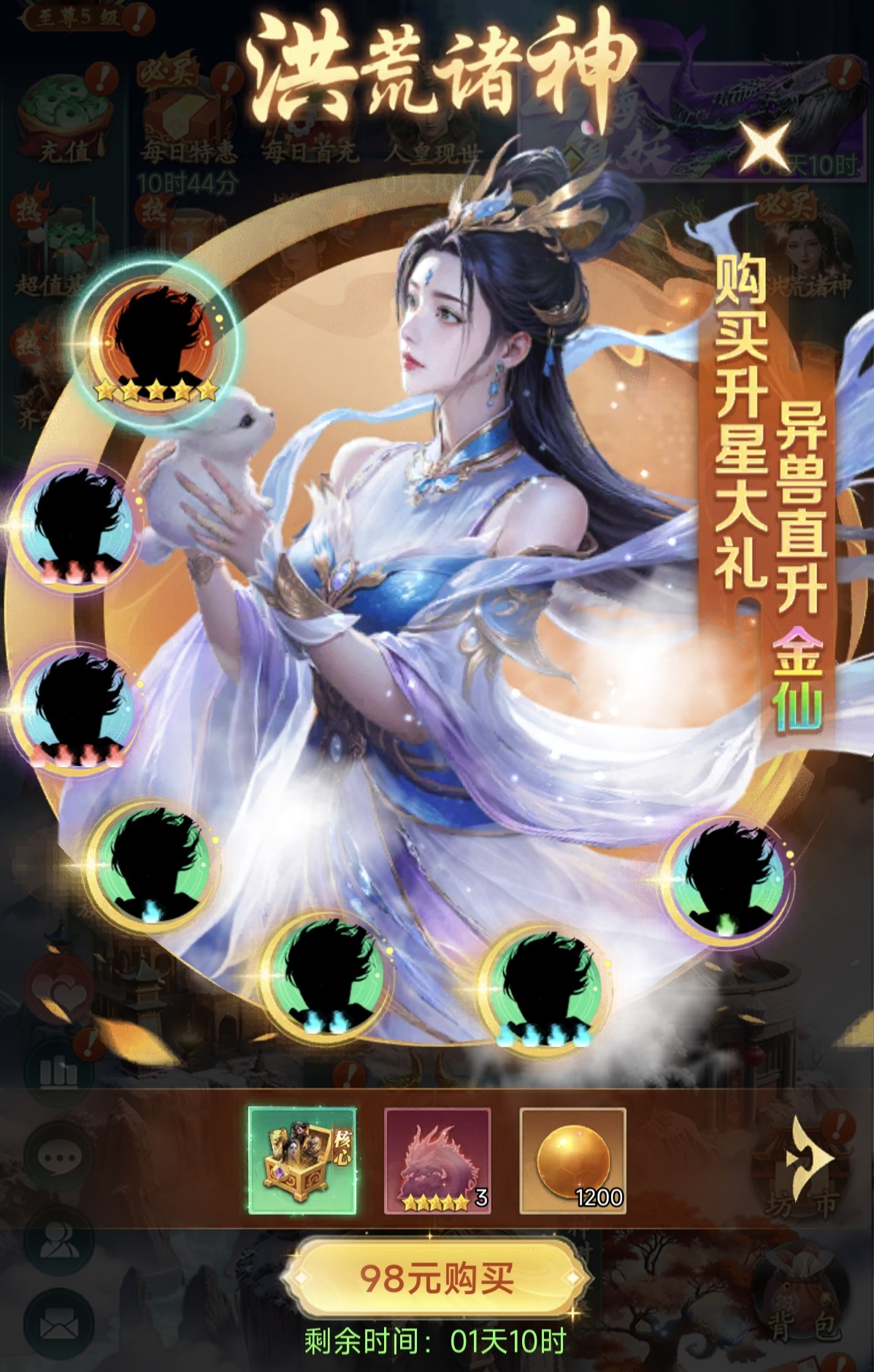 开服初期需重点布局以下几类高回报投资: 首充档位必选,可即时获取S+输出角色齐天大圣,显著提升前期推图效率; 双月卡组合(超值月卡+至尊月卡)建议同步激活,每日稳定产出仙玉、孵化卷及专属特权; 基金系统为长期资源引擎:128元超值基金提供高额返利,累计返还仙玉量极为可观;328元豪华基金附赠自选角色包及海量养成材料;成长基金则适配中长期战力成长曲线; 洪荒诸神礼包定价98元,核心价值在于解锁核心角色自选权,快速补强阵容短板,提升阵容成型速度。