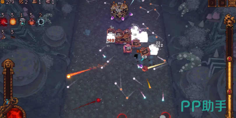 第一个为大家推荐的流派就是用快枪手搭配忏悔者,这样再加上一个杂耍者的能力,进行综合协助的话大家就可以看到一个速攻协助流的搭配,这个阵容也是目前相对于使用各类角色来说用到最强势的一个搭配组合,当中用到的技能效果当中,大家可以看到他们快枪手是作为阵容核心的,快枪手各个技能当中带来的持续压制可以用弹珠打出范围效果,而且他这类弹珠打出来的能力当中也具有打断的能效果,对于小怪行动来说有这样的打断会影响到他们前进速度。