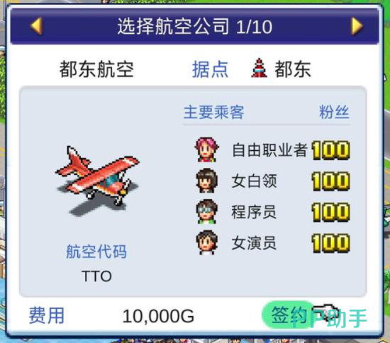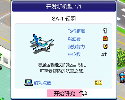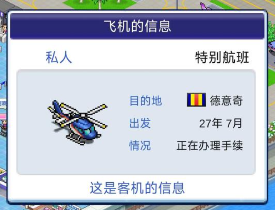 第一个为大家介绍的是小型固定翼飞机,这个飞机的话是目前参考了赛斯纳系列当中的一架飞机,其中大家因为它的通勤距离不长,而且也是一个客流比较低的航线,所以很多玩家前期都会为它签约,很多乘客基本都是类似于自由职业者,包括程序员之类的乘客,这些乘客为大家带来的人气还是挺高的哦。