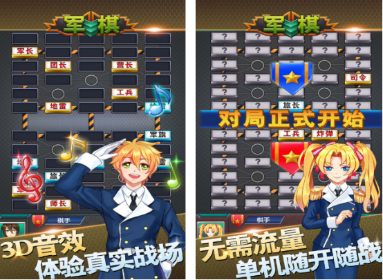 在这款能够加入到军棋较量的游戏世界里,玩家不仅要使用技巧,还要应用智慧。支持双人对战以及人机对战,超多的玩法,高度还原了四国军棋所具备的特色内容,不需要联网的情况下就可以进行较量,因为它在人机对战的时候利用的是最智能的算法,可以根据玩家每一次下棋的情况,完成相应的挑战,随时随地都能开战,无需流量。