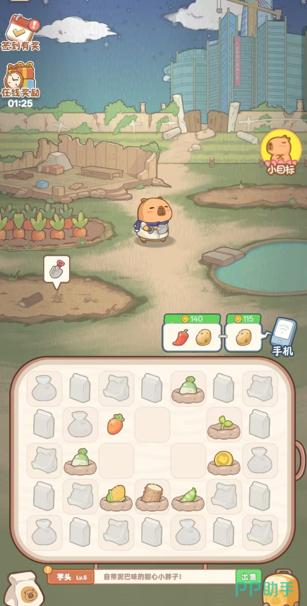 作为一只惨遭失业的卡皮巴拉来说简直是天塌了,于是它做了个重要的决定,“城市套路深,我要回农村”,便即刻开启新生活。那都回村了,新生活当然就是从农活干起啦,玩家将作为农村的主人,开垦新鲜土地,种植各种类型的蔬菜。除了日常种植,卡皮巴拉还会与好朋友一起改进农场的经营方式,包装蔬菜进行蔬菜销售等活动,