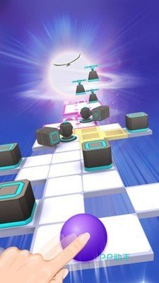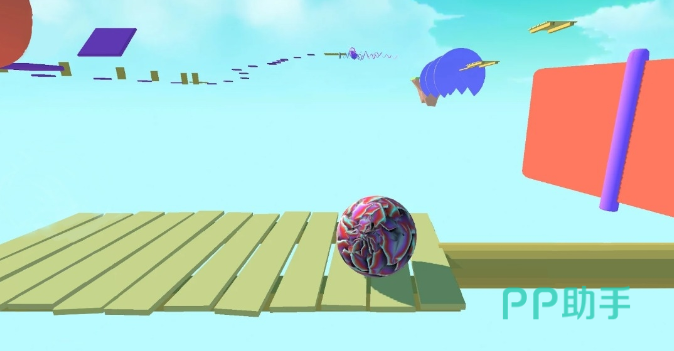 小球所滚动的赛道设计是在天空之上的,让玩家在一个梦幻的场景之中,高速的滚动小球,出现障碍时一定要更快的反应,一不留神小球便会偏离轨道,需要我们重新闯关。设计的赛道场景是非常具有空间立体感的,而且这个空间之中的结构会越来越复杂,挑战的难度会越来越大。