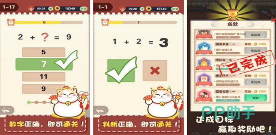 在经典的数学知识当中全部集结,还适合于所有的小学生来共同畅玩,其中包括了各种算术玩法,或者是经典的解谜玩法等等。比如在开局之后大家需要寻找到正确的排名,可能某一个排名的排列顺序是不正确的,只要大家通过较强的逻辑思维能力找到最终的答案,就能够破解谜题。