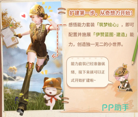 扩建操作始于奇想力套装「筑梦绘心」的感悟。装备完成后,即可启用核心能力「伊赞蓝图·建造」。携带该能力抵达施工牌位置,交付指定材料,即可在预设区域搭建建筑轮廓。当前2.3版本支持建造两类设施:饮料店与汤池;后续版本将逐步拓展更多建筑类型。轮廓搭建完毕后,内部空间仍为空置状态,需通过家具填充实现功能化。家具设计图及配方可通过多种途径获取,包括完成建造类任务、提升建筑等级、或在已建成建筑内触发特定交互对话。获得图纸后,使用「家居制作台·扩建」进行制作,并将成品家具摆放入内。