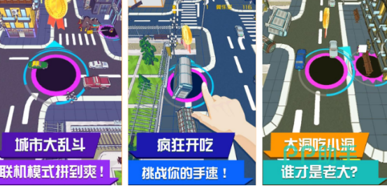在此游戏中,除了可以在超大城市当中任意游走之外,还有众多关卡等你来挑战,有较为独特的成长机制,还有树木建筑,全部都由你来吞噬,从而吸收庞大的目标,最终形成独特的视觉反馈,提供多样化地图挑战,包含不同黑洞类型以及道具,拥有着丰富的游戏体验感。