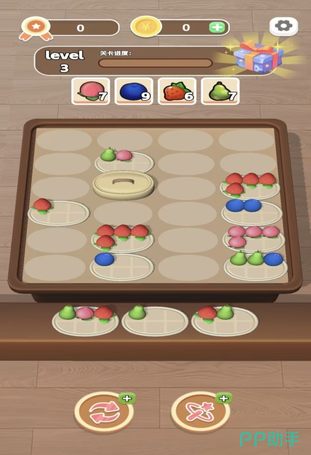 《水果消消乐》这里的关卡加入了非常多的水果种类,需要选择相同的水果打包起来,过程中要用非常快的手速操作,也要将这里的物品进行分类。在下方可以看到许多的水果盘子,每一关卡内有不同的目标要求,下方拥有着重置等不同的功能。到他指定的目标可以获得礼品,每个关卡都有众多的金币来有奖励,挑战的难度也会逐渐的增加,过程中相当的解压。
