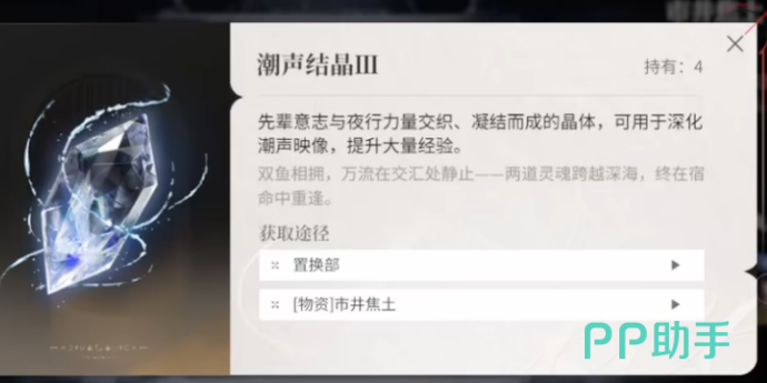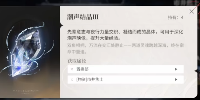 需特别注意:潮声结晶仅可通过完成“市井焦土”副本获得,且该副本存在难度梯度设计,高层数奖励包含更高数量的结晶。建议玩家优先夯实基础阵容练度,再逐步挑战更高层数,形成“通关→获取结晶→强化角色→挑战更高层”的正向循环,从而持续提升整体战力阈值。