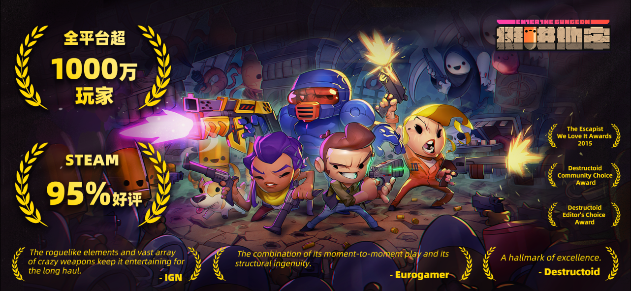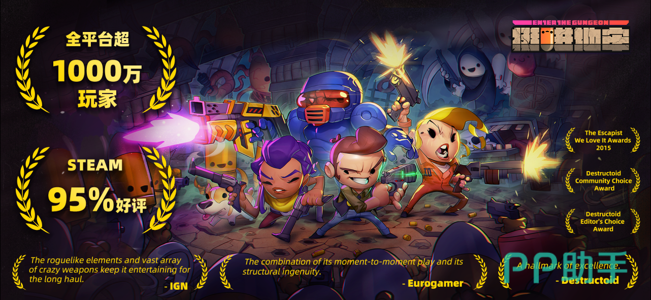 作为一款复古类型的像素射击游戏,如果说哪一款最为经典,那么《挺进地牢》绝对是小伙伴们不容粗过的一款。游戏以其独特的美式像素2D风格,为我们带来了极为流畅却细节丰富的像素美术力的表现,游戏中的玩家将要手机各种脑洞打开的武器以及与场景物品之间的互动,在一场场地牢之中展开冒险,游戏整体风格诙谐有趣,却不失其抽象搞笑的元素以及射击特点,非常适合轻量化玩家游玩。