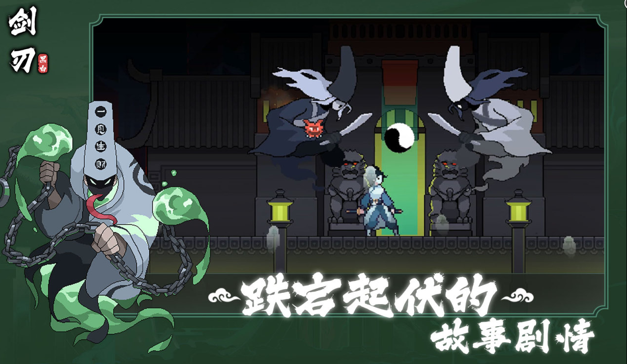东方复古风格类型的剑刃游戏,《黑白剑刃》以独特的肉鸽动作类型游戏与像素风格的画面,为我们打造了独特的东方暗黑神话的世界与游戏背景,在游戏中的玩家将要扮演阴阳吏,斩杀妖魔,通过收集游戏中的各种道具以及切换自己的“阴阳面具”,在不同的界面之中闯关与战斗,游戏的斩杀方式极具爽感,非常适合解压。