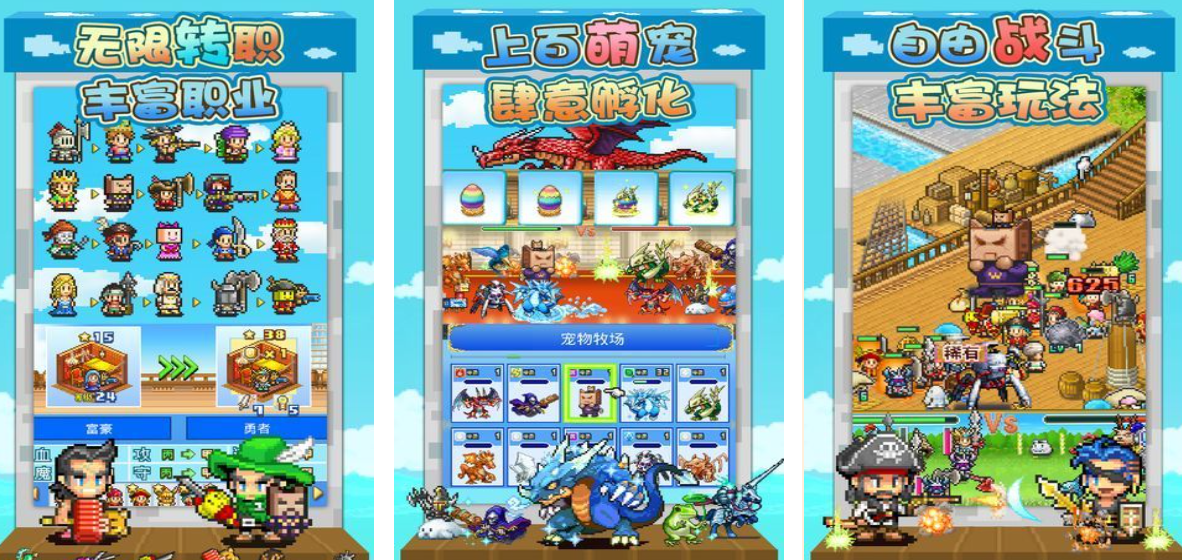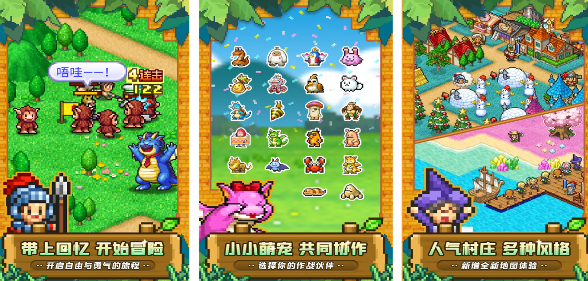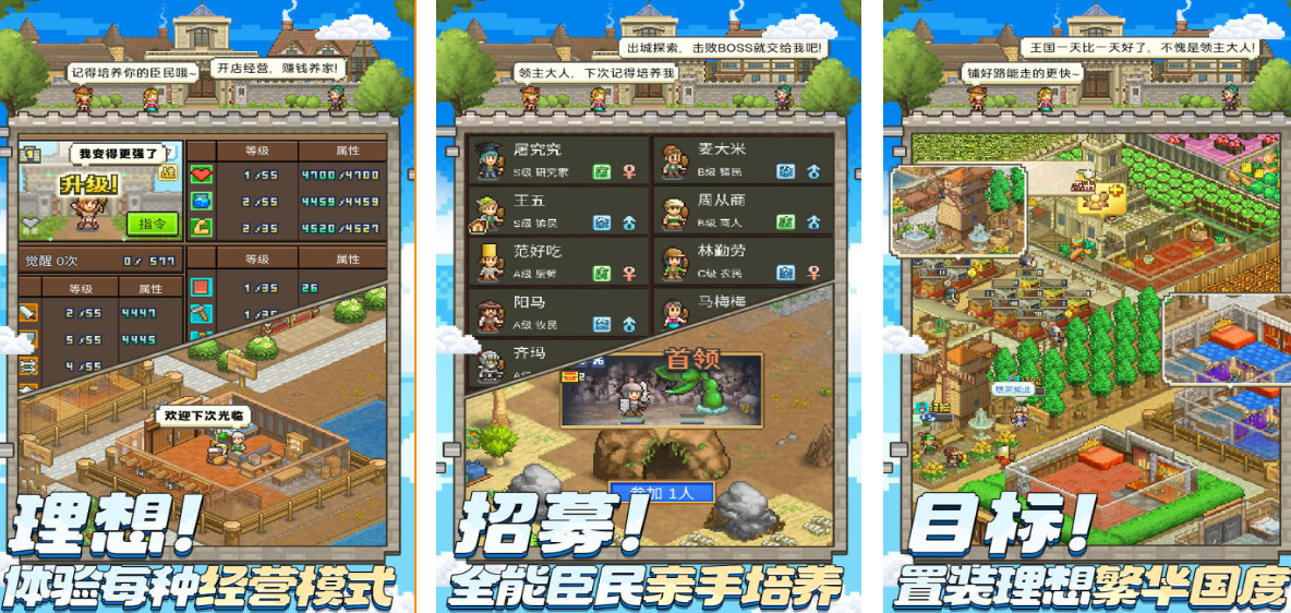 《冒险村物语2》保留了原有的核心玩法,并且对村庄建设以及勇者冒险的玩法进行了全方位的升级。玩家扮演村长,需要建设房屋、商店、训练场等设施来吸引各个勇者前来定居。游戏还增加了很多职业分支、技能树系统和装备打造机制,勇者不再是简单的数值单位,而是一个有独立性格、成长轨迹和社交关系的鲜活人物。玩家可以派出勇者组成小队去攻打魔王,也可以去探索秘境,所获战利品可用来改善村庄设施或者制作传说装备。