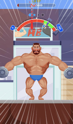 这款游戏就是核心帮宅男健身逆袭,玩法非常简单,只要点击屏幕控制指针停在指定的区域,就可以帮助游戏里的角色锻炼,滚动条上有三个颜色的区域,红色和绿色还有蓝色。只要指针停在绿色和蓝色区域,就能获得健身经验,有了经验就能够升级健身器材,还可以制定专属的健身计划,一步一步的提升,玩到后期就能够明显的感受到角色的变化,从刚开始的瘦弱宅男变成了肌肉发达的样子,变化非常的夸张,看一次笑一次。