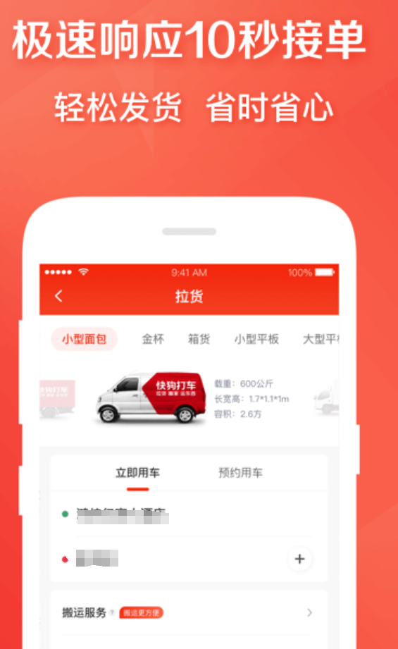 聚焦大件运输与搬家场景,响应时效性强,下单后约十余秒即有司机接单并主动联系上门。服务网络覆盖全国340余个城市,异地用车保障充分。运价体系透明,基础运费、里程计费、等候时长费用分项列示,无隐藏加价项。车型库丰富,涵盖微型面包车至中型厢式货车,满足从文件包裹到家具家电等不同体积货物运输需求。