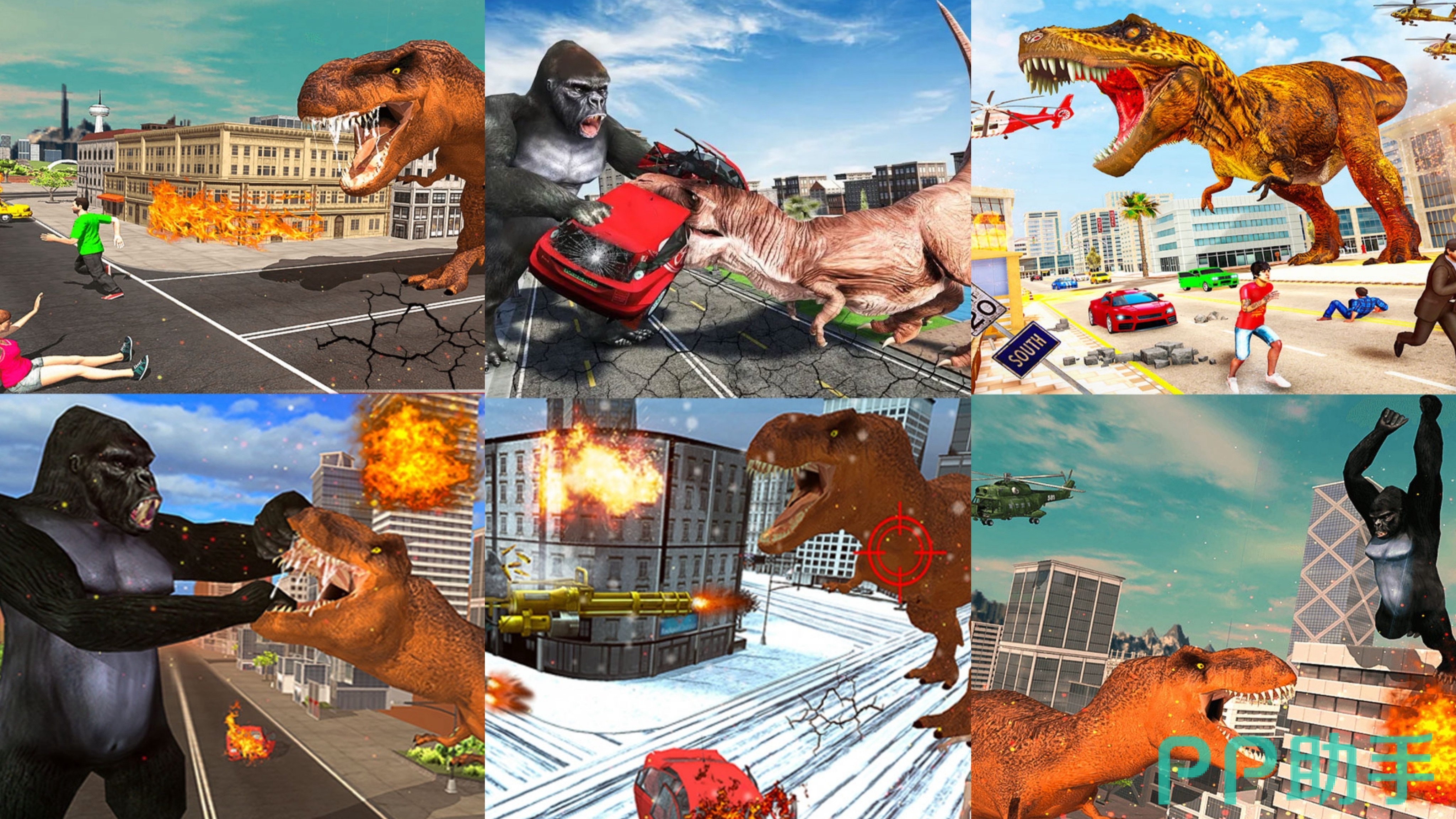这是一款偏向休闲风格的3d战斗类手游。游戏里有两个主角,一个是大金刚,另一个是恐龙,为了争夺城市霸主的位置而大打出手。我们将会以大金刚的视角出发,在城市地图里自由穿梭,完成各种挑战任务。同时还要和恐龙进行搏击,争取早日达到恐龙杀手的成就。游戏采用的是3d视角,画面冲击力和代入感极强,喜欢这种纯肉搏的宝子们可以下载试试吧!
