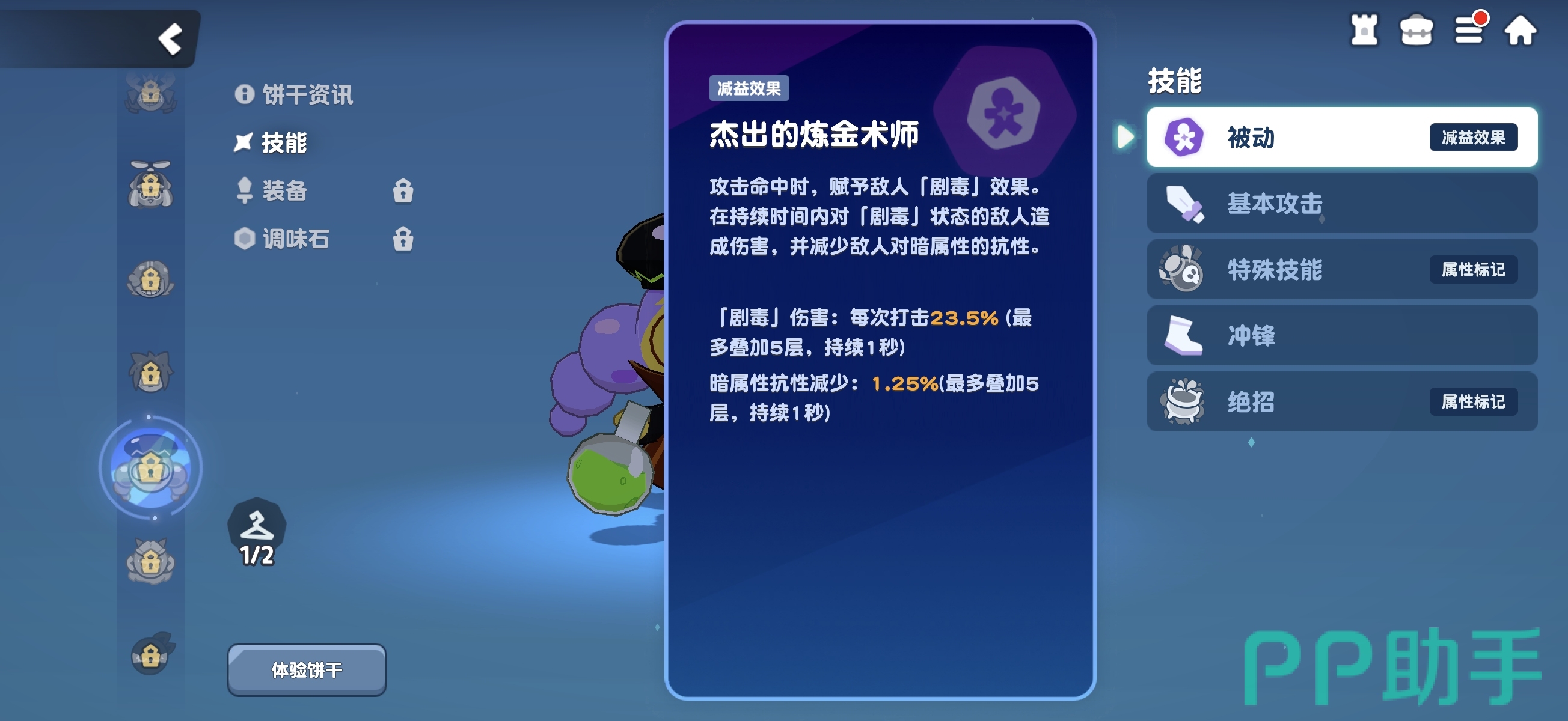 《饼干人联盟》是一款以经典饼干人IP为世界观基础的动作冒险手游,融合了单人剧情闯关、多人协作副本、实时格斗对抗等多种玩法模式。玩家可自由切换并操控数十位风格迥异的饼干角色参与战斗,每位角色均具备专属定位与机制设计。本文聚焦于其中一位高人气辅助型角色——炼金术师饼干,深入解析其技能逻辑、实战定位及队伍适配性。
