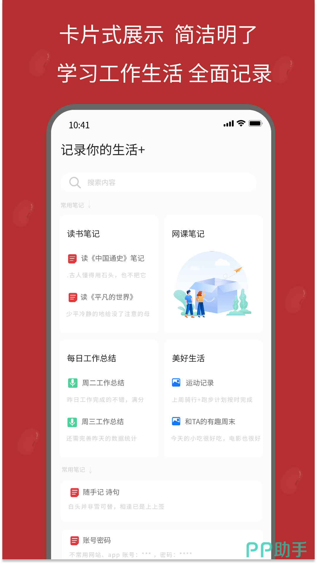 系统级原生体验,无需复杂设置即可快速录入。支持多场景记录:会议要点、购物清单、生活随想、学习摘录等;内置文件夹分类与关键词检索,查找内容一步到位;敏感信息可启用独立加密模块,保障隐私安全。界面极简无干扰,交互逻辑清晰,长时间使用不易疲劳。
