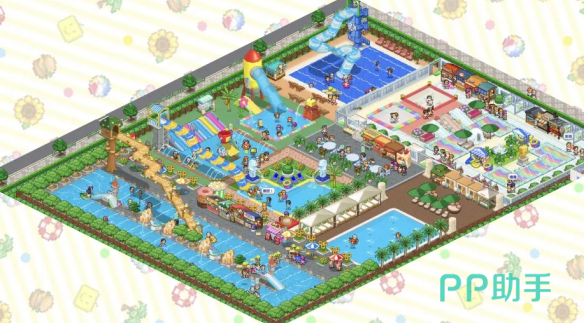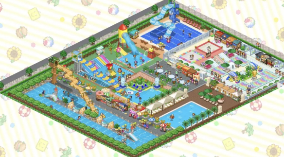 玩家将全面负责水上乐园的整体建设与运营管理。泳池造型、滑道坡度、设施布局等均可自由设定,无固定模板限制。核心挑战在于科学规划游客动线、平衡设施密度与承载能力,并高效调配清洁、补给等后勤资源。延续开罗标志性的像素美术风格,画面简洁明快,节奏张弛有度。