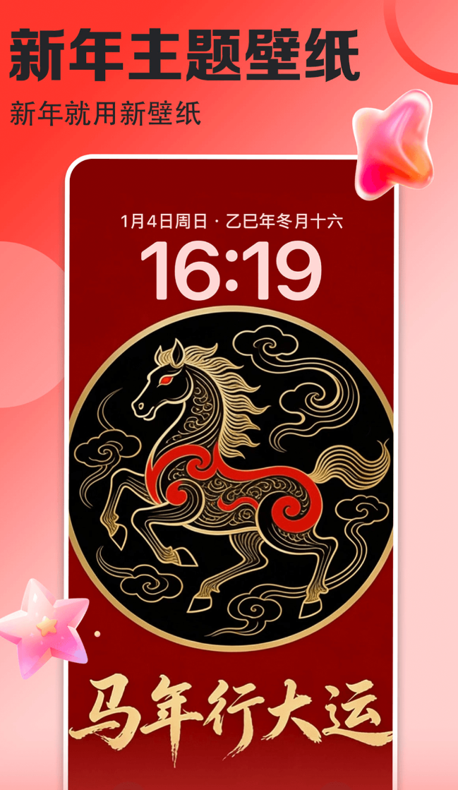 强调桌面组件协同能力,支持时间、天气、音乐播放器等轻量化小部件与壁纸融合呈现,强化界面整体性。文字锁屏功能允许自由输入个性化文案,适配网络热梗、影视台词、励志语录等多样化表达。主题广场提供成套手机主题资源,实现桌面风格批量切换。交互设计采用左滑切换、右滑收藏手势逻辑,学习成本低;推荐模型随使用时长持续优化,内容匹配精准度逐步提升。