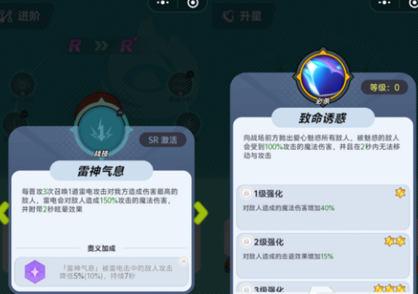 夏尔美则承担团队功能性枢纽角色。其大招“致命诱惑”可使敌方全体陷入2秒无法行动、无法攻击的强制瘫痪状态;普攻命中三次后自动触发“雷神气息”,精准锁定敌方关键输出单位并施加眩晕,为我方创造安全输出窗口。虽非传统主力输出,但在多变战局中能极大提升阵容稳定性与战术容错空间。