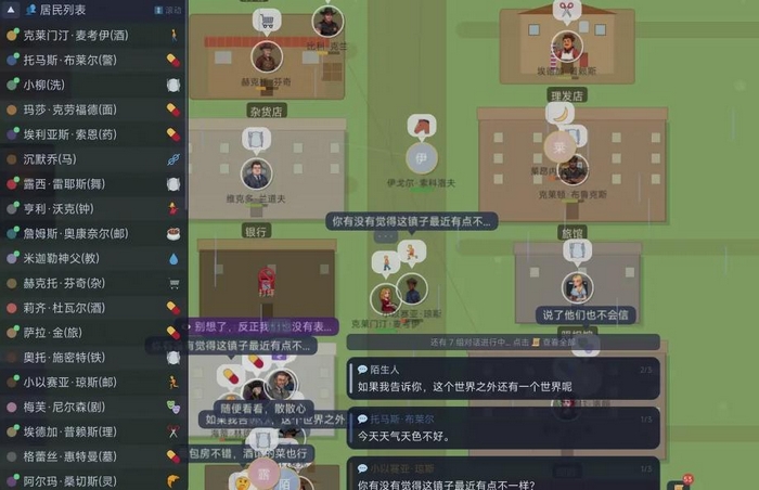 小镇共设30余位性格鲜明的常驻居民,涵盖酒馆经营者、舞厅表演者、地方记者、精密钟表匠等多元职业。每位角色均拥有独立五维属性模型(如亲和力、好奇心、隐秘性等),并携带专属背景故事与隐藏事件链。他们遵循自主日程安排,会自发开展对话、产生分歧、建立亲密关系,甚至在无人注视时流露内心独白。