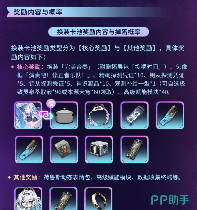 活动道具池内容丰富,涵盖限定换装、主题场景及特效资源。建议玩家在版本更新前合理储备「移转之辉」,以提升目标道具获取效率。此外,官方将通过版本登录奖励、日常任务、览宙合版本任务及活跃度系统,持续发放额外「限时探测凭证」。