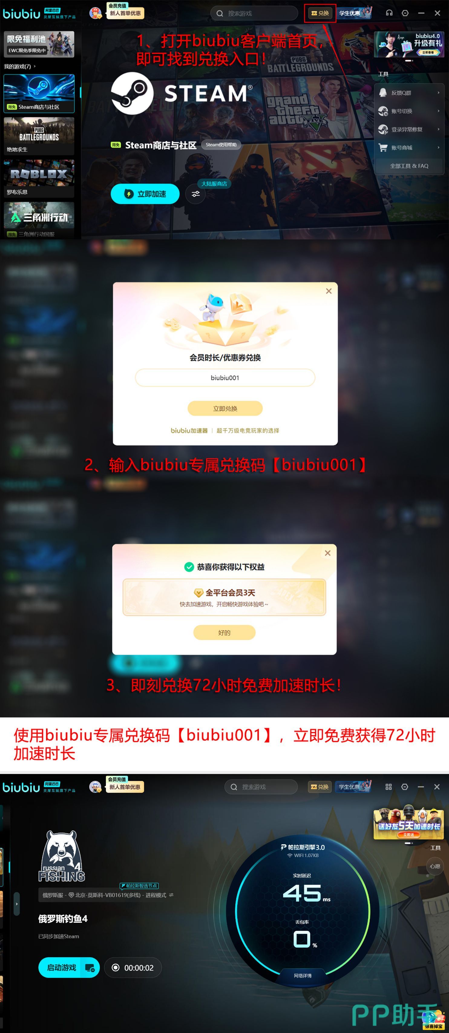 值得关注的是,biubiu加速器特邀《绝地求生》职业赛事冠军小叮当担任代言人兼产品体验官,全程参与多轮实机压力测试。在福利策略上,新用户注册即可享总计96小时免费加速时长:完成账号首次激活自动发放24小时基础权益;另通过输入专属兑换码【biubiu001】还可额外领取72小时高级加速权限,双通道叠加,即刻开启稳定联机体验。