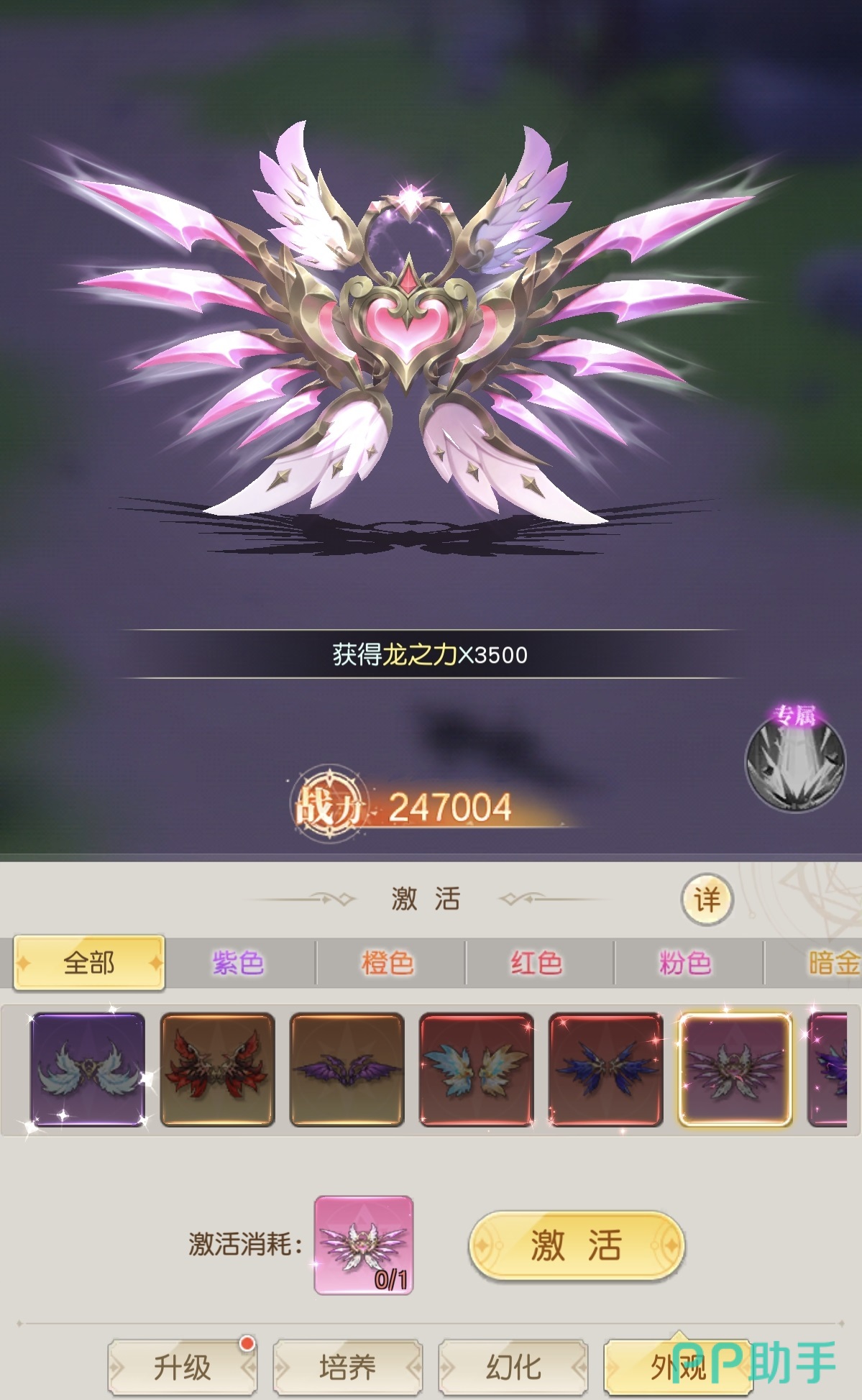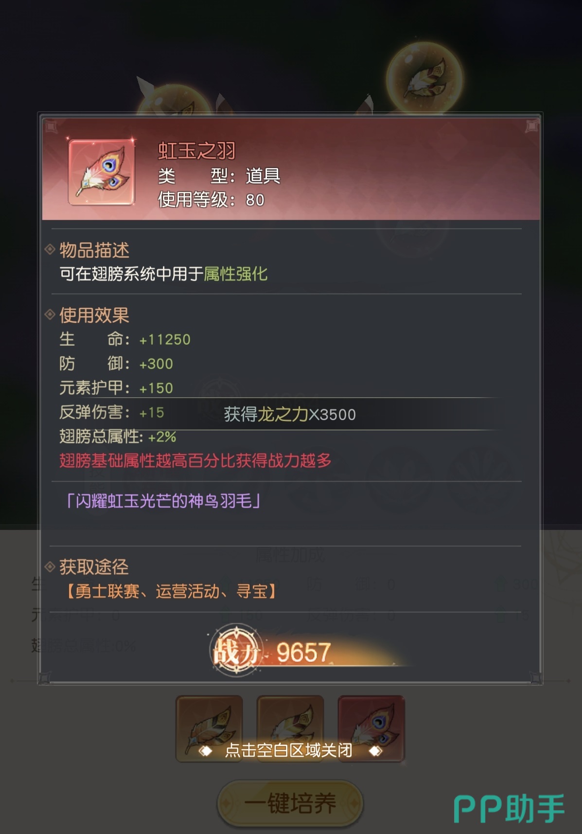 翅膀成长依赖多重资源协同:使用【翅膀精华】可提升祝福值;祝福值满格后触发升星,每累计10星自动晋升1阶。达到指定阶数后,将激活专属被动技能;后续需消耗【翅膀技能书】提升该技能的等级与效果。另一关键养成材料为【翎羽】,含金铂之羽、虹玉之羽、刚玉之羽三类,分别强化生命、防御等基础属性。其中【虹玉之羽】具备全局百分比加成特性,可同步提升翅膀系统总属性数值。此外,当翅膀处于对应阶数区间时,可使用【升星卡】实现一键升星;若当前阶数超出升星卡适用范围,则升星卡将自动折算为等价祝福值,确保资源零浪费。