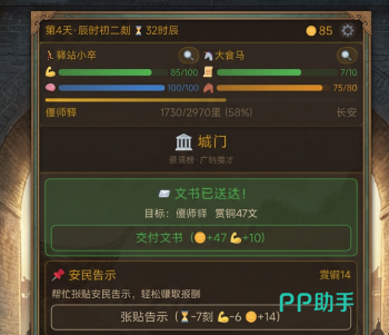 除主线信件投递外,玩家可通过巡查市集、协助流民、破获私驿等方式获取粮草、马匹、火漆等关键物资。这些资源直接影响行进速度、情报保真度及特殊事件解锁权限,构成可持续成长体系的核心支点。