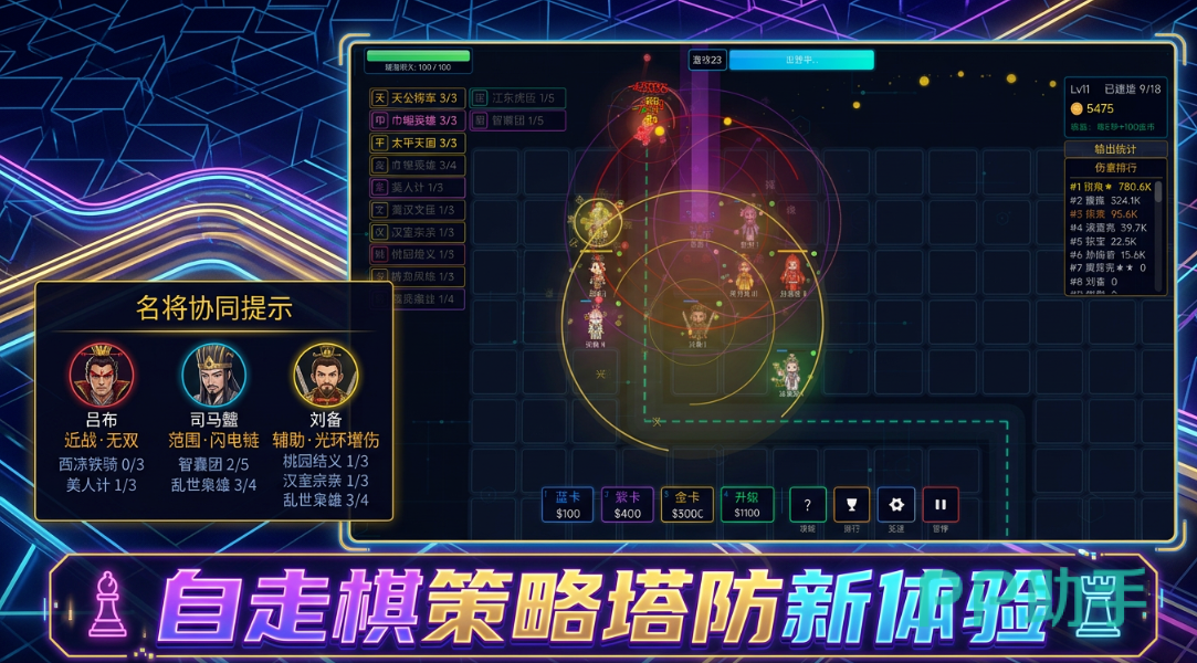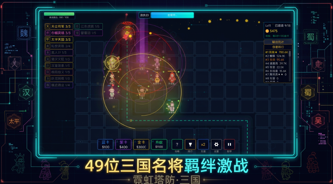 霓虹塔防三国在玩法上做了创新,画面具有很强的表现力,霓虹风格的特效和经典三国人物的结合会产生不一样的视觉感受。对于策略爱好者和三国迷来说,在这里都能感受到游戏带来的乐趣,并且很期盼正式推出后马上投入战场。