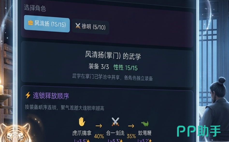 整体上手门槛友好,无复杂操作压力,战斗全程无需手动施放技能,仅需策略性预设与临场切换。养成主线清晰:技能学习→属性强化→门派专精→武道顿悟,节奏张弛有度,单局时长控制在90秒以内,适配通勤、午休等碎片化场景。