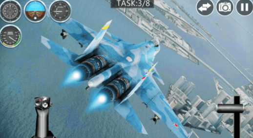 主打实时对战与全球排名机制的空战竞技产品。地图空间开阔,支持多人同场动态匹配,玩家可驾驶差异化机型参与混战。操作界面划分为双区域:左下角为虚拟摇杆控制位移,右下角集成加速/减速及特殊技能触发按钮,适配不同操作习惯。胜负判定基于实时积分系统,鼓励主动进攻与战术协同。