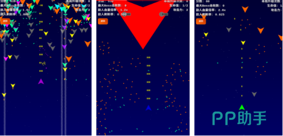 采用极简美术风格,但玩法结构清晰完整。玩家操控战机在固定区域内躲避弹幕、清除敌机,每轮战斗均设有普通敌人与阶段性BOSS。游戏提供三种预设难度档位,对应不同敌机血量设定;同时开放自定义模式,支持手动调节敌方生命值倍率,满足新手入门与硬核挑战双重需求。核心成长路径围绕分数累积与关卡突破展开,强调反应力与节奏把控。