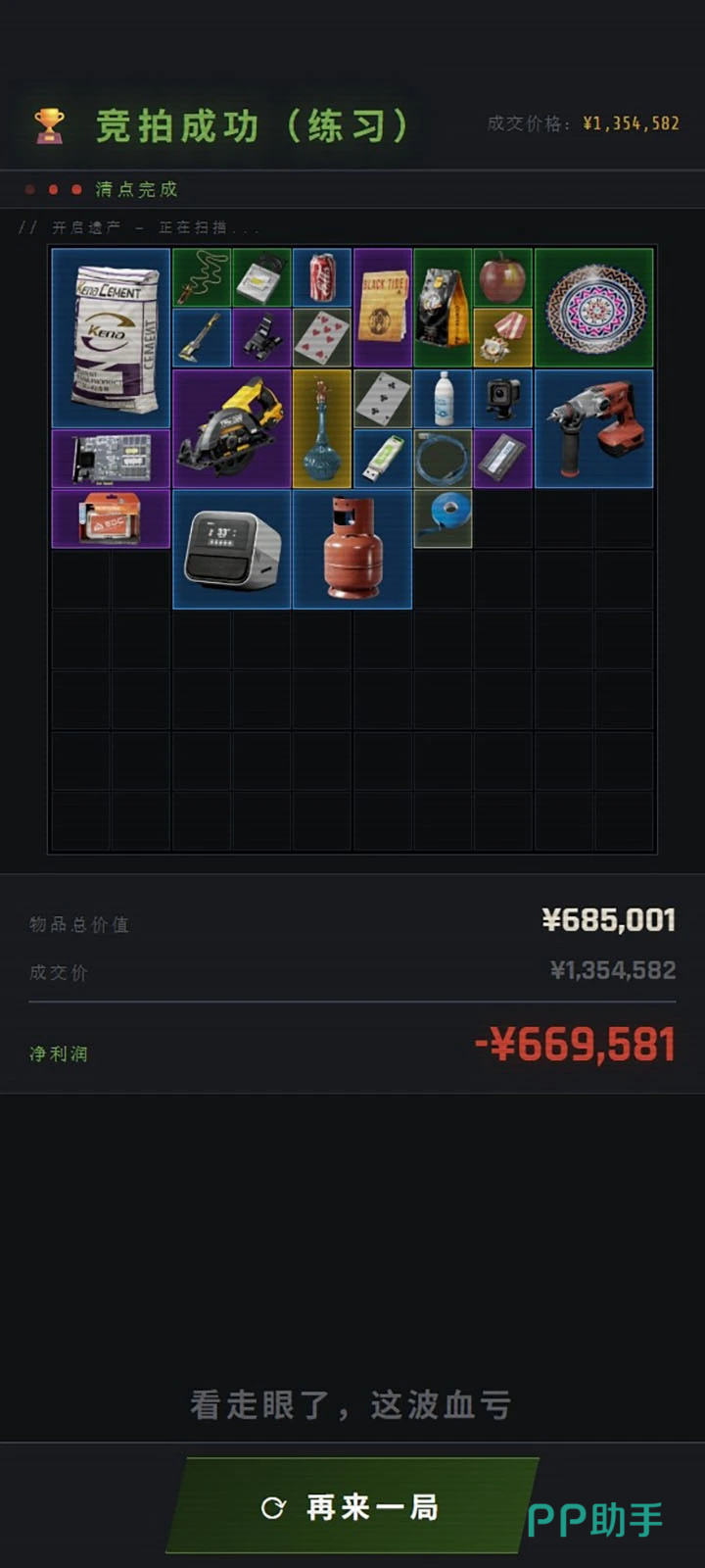 局内提供两个关键出价:“秒杀”、“梭哈”,配合在线输入心理价和出物鉴定,每个回合结算收益或亏损,让你感受价格起伏带来的竞争压迫,当然加入故意的流拍更让每一局的走向都扑朔迷离。