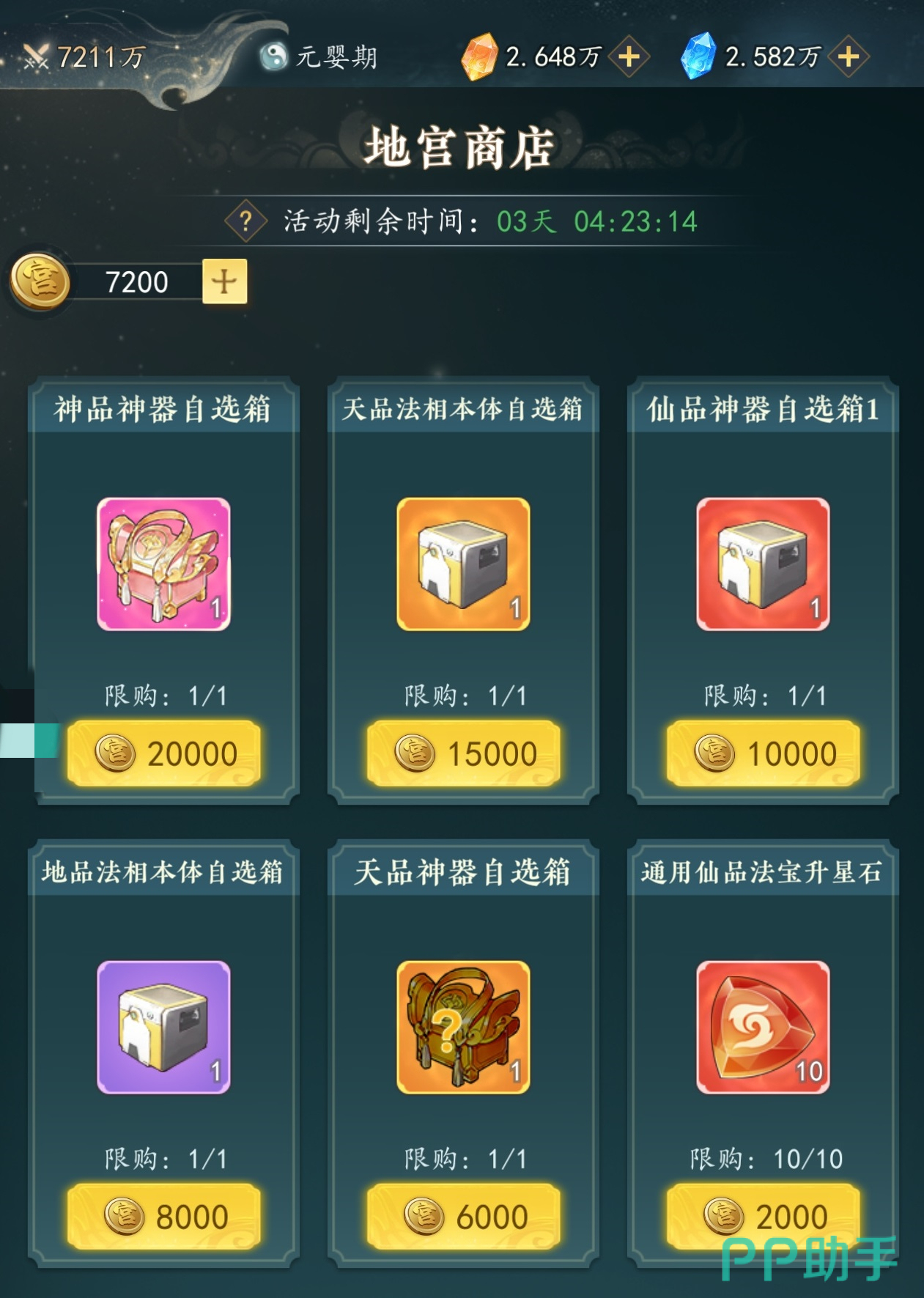 探索途中会触发多种随机事件:机关与符咒类事件不消耗体力,务必全部拾取;丹药类事件同样无体力消耗,且提供永久属性加成,必须优先服用;遭遇普通怪物时,建议集中挑战以高效积累地宫币;锦囊类事件则性价比较低,仅在体力充裕前提下酌情处理。所获地宫币应优先兑换天品法相本体自选箱与天品神器自选箱,其次再考虑其他辅助道具。