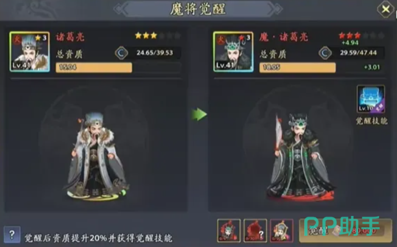 另外在武将组合上面,大家要注意优先选用有合击技能的武将放在一起用,他们触发了此类核心技能的话,不会算在游戏的行动回合里面,相当于一类额外输出效果,比如现在游戏当中的关羽、刘备、张飞这3个角色放在一起用,他们的核心能力就非常的经典,利用他们的自身击败能力,同样也可以提升我方在合击触发的概率,效果上面提升了足够多的概率以后,我方可以再加上一些其他的S级武将来提升整体阵容的强度,另外的话,在战前大家一定要准备好给自己的核心武将进行培养,比如在抽卡的时候,大家如果通过十连抽拿到更高级武将的时候,其他的武将碎片可能都是重复的,这里重复武将就可以直接化作武魂来强化这里的主力武将了,其中将1~2名主力武将等级都提升起来以后还要强化他们自身的能力,以及突破了上限更高以后,就可以选择一个比较适合他们的阵法。