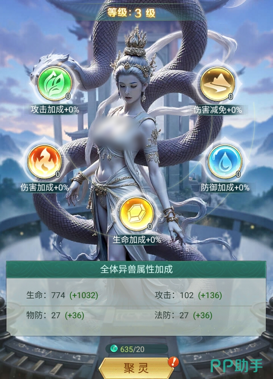 仙灵功能由聚灵和五行之灵两项内容构成,聚灵能直接为异兽角色增加四大基础属性的数值,其加成数值会随着聚灵等级的升高而增加。五行之灵在升级后除了能让异兽角色的四大基础属性得到提升外,自身还附带专属的强化效果,当它们的等级提升至5级、10级时,专属强化效果还将得到进一步的强化。所以不管是提升聚灵等级,还是为五行之灵升级,都能有效地令异兽角色们变强,因此也令该功能成为了养成玩法中较为关键的一环。