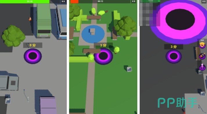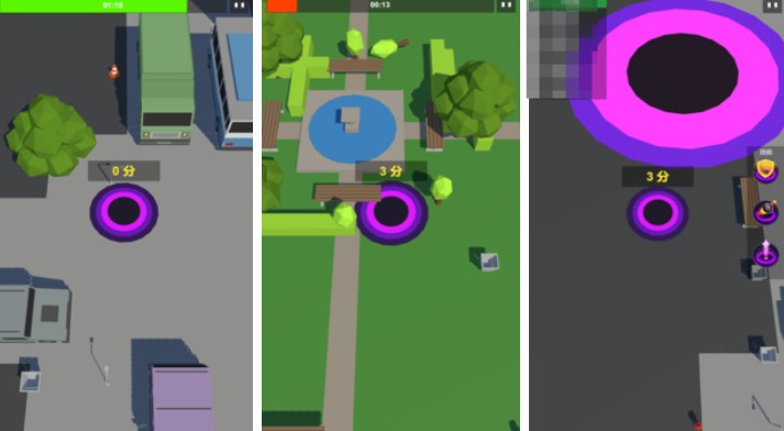 该游戏以宇宙级物理现象为灵感,构建了一个以“成长型吞噬”为核心的沙盒式竞技场。玩家操控初始微小黑洞,在城市、太空站、海底遗迹等多主题场景中不断吸收物体壮大自身,过程中需预判轨迹、规避障碍并干扰对手发展路径。皮肤系统涵盖多种材质与特效,配合粒子渲染技术强化视觉冲击力,整体玩法兼具模拟真实感与娱乐夸张性。