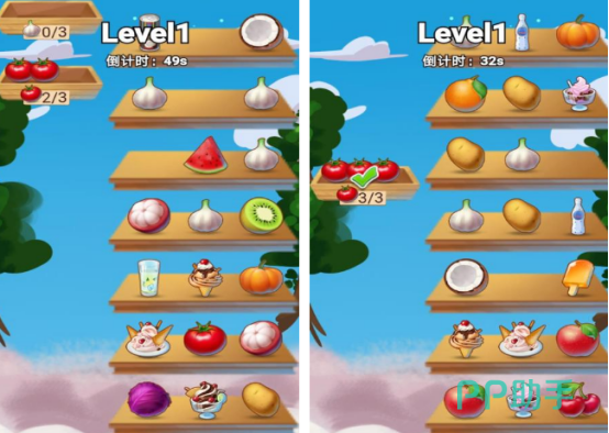 这是一款节奏明快的三消类休闲游戏,场景设定贴近日常生活,关卡中会出现水果、蔬菜、冰淇淋、大蒜等多样化食物图标。核心机制为在限定时间内,将三个及以上相同元素横向或纵向排列,完成匹配后自动消除并计分。若能在倒计时归零前清空全部目标图块,还可触发额外积分加成与通关奖励,适合碎片化时间轻松上手。