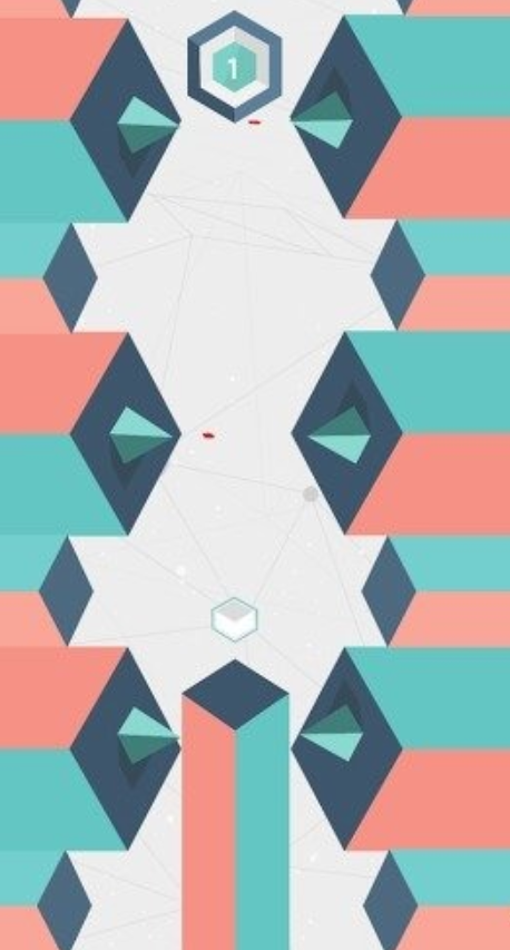 极简主义视觉节奏游戏,界面纯净无冗余元素。操控对象为纯白几何方块,通过单次点击完成跃起+位移复合动作。关卡中设置多种干扰机制,典型如立柱发射不可见光束——该光束虽无实体模型,但具备精确碰撞判定,触碰即导致方块解体。全程依赖视觉预判与反应时序控制,考验玩家对动态障碍物运动规律的快速识别能力。
